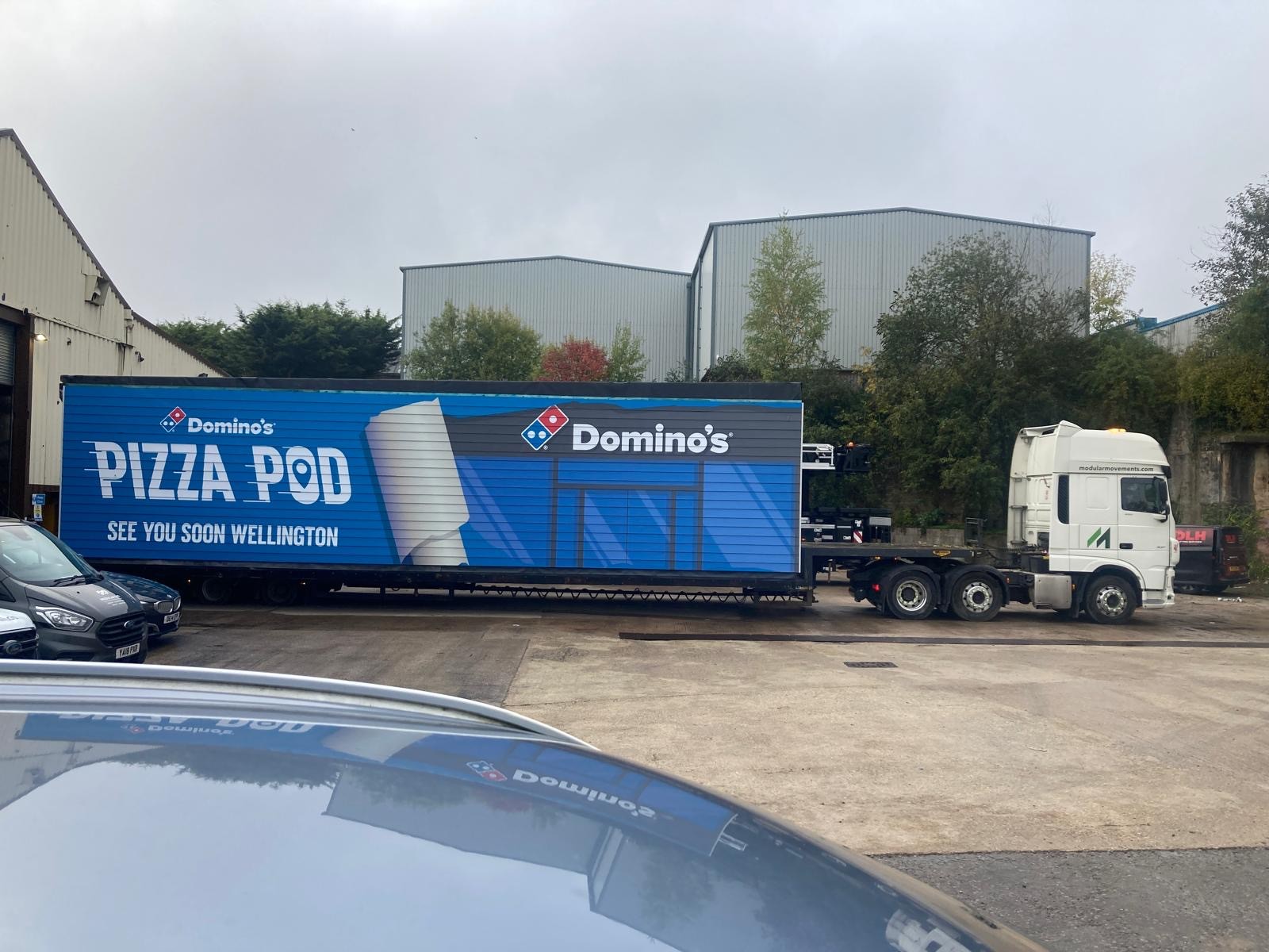 Domino’s commissioned Centurion Signs to wrap a modular building – the first of its kind for the company in the UK. Constructed by Modular 500 in Chesterfield, the building required a full external wrap prior to transportation to Wellington, Somerset. The goal was to maximise brand visibility and create publicity during transit.